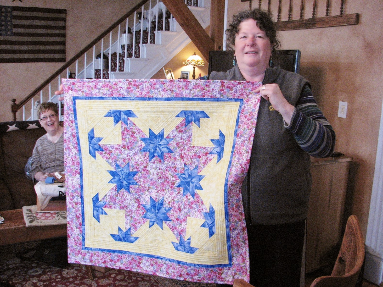 Jill brought over a beautiful quilted piece (sorry Jill, this photo did not capture the correct color).